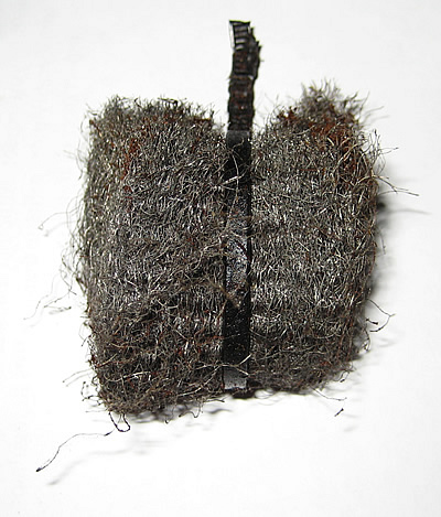 It's a really straight forward test. Steel wool has a huge surface area and corrodes extremely quickly. It is also a very hard shape to coat. You couldn't, for example, paint it. A piece of steel wool was cut in half. One half was sprayed with ACF50 until it was dripping wet, the other half was not treated at all. The treated sample was hung up so any excess ACF50 would drip off. Both samples were then sprayed with salt water until the water dripped from them. No worse than riding down a soaking wet road that had been salted. They were then simply left in the cold just as you might leave your bike after a ride.